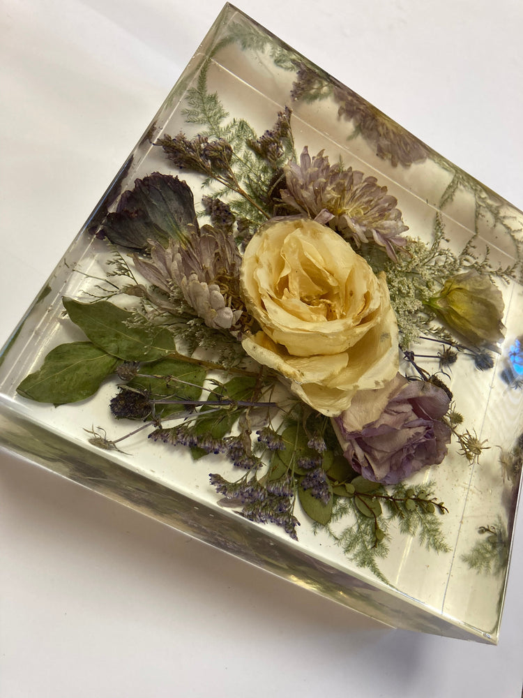 pieces can take anywhere from 3-5 months depending on the pieces ordered. Because it takes 2 weeks to dry fresh flowers upon arrival & each mold takes about 7-9 layers of resin that cure for 24-48 hrs. each. Resin work can be quite a long wait but we stay in touch throughout the process, so you will have an idea of when it will be finished.